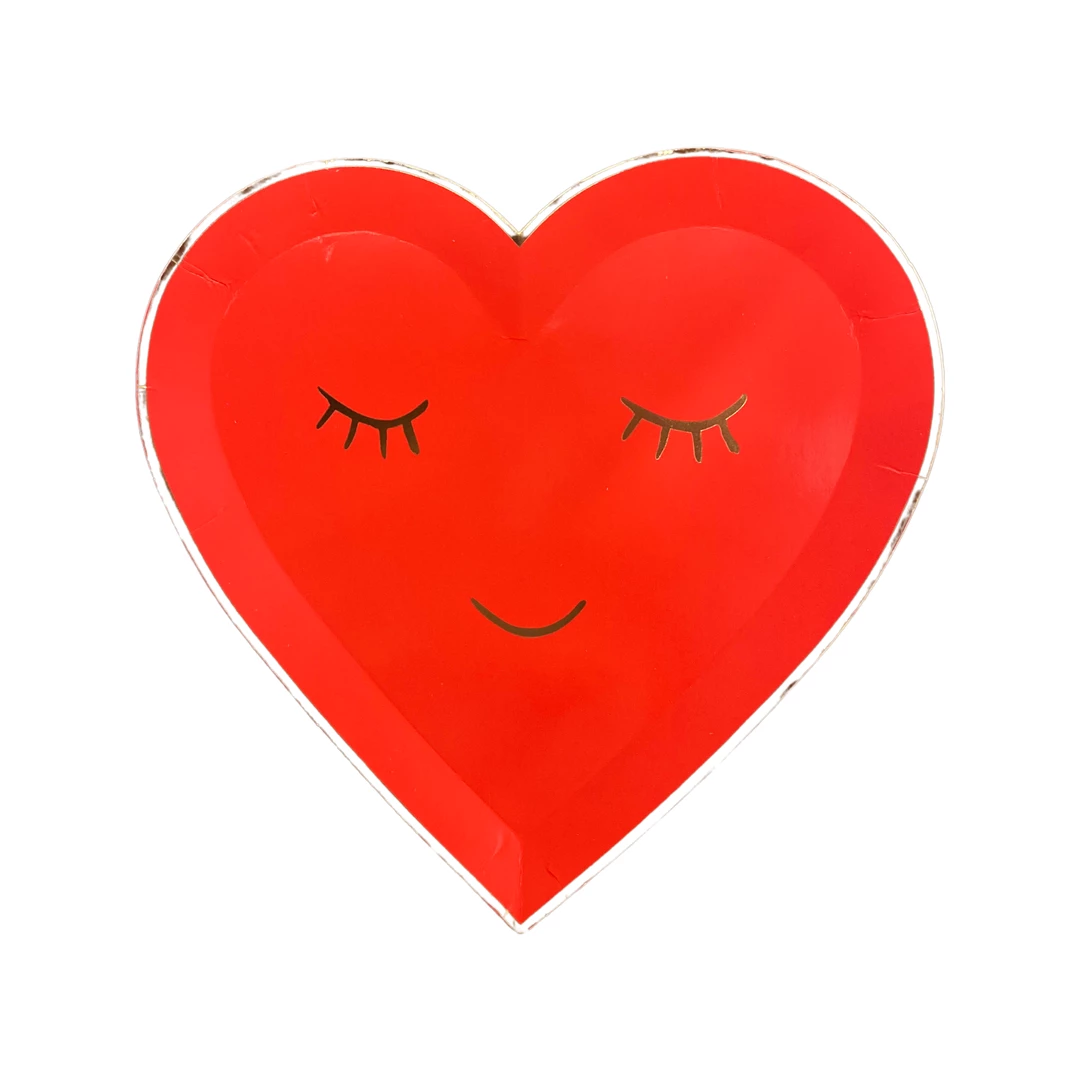 This unique Heart shaped plate is perfect for any type of party with its cute face design. These paper plates are embellished with shiny gold foil around the edge of the plate. this design is also available in a variety of different colours such as Green, Pink and Purple.